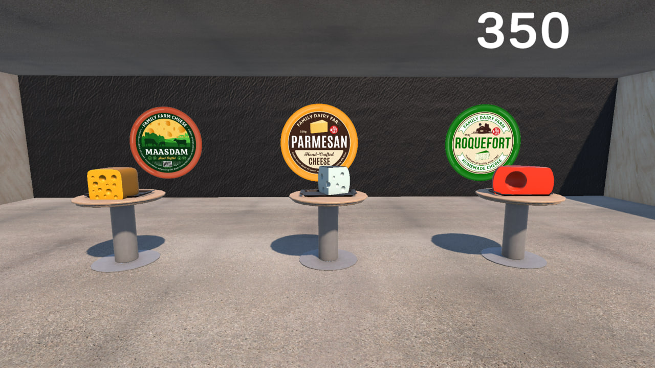 "Cheese Factory" is a chaotic kitchen simulator where precision meets absurdity. Get an order, grab the right cheese by shape and color, and blast it with a shotgun straight onto the plate. Just another day in the dairy business.